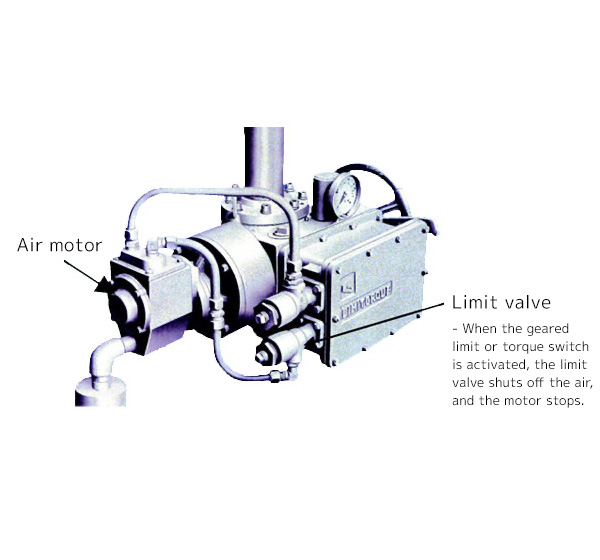Actuator loại này sử dụng động cơ khí nén để dẫn động, nhưng các thiết bị điều khiển như công tắc mô-men xoắn và công tắc giới hạn dạng bánh răng là điện.